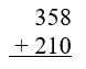 Say to the student(s), “Right. I will write a 5 in the hundreds column to finish the problem. So how much is 358 plus 210? Ready.” Signal.