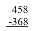 Say to the student(s), “So how much is 458 minus 368? Ready.” Signal.